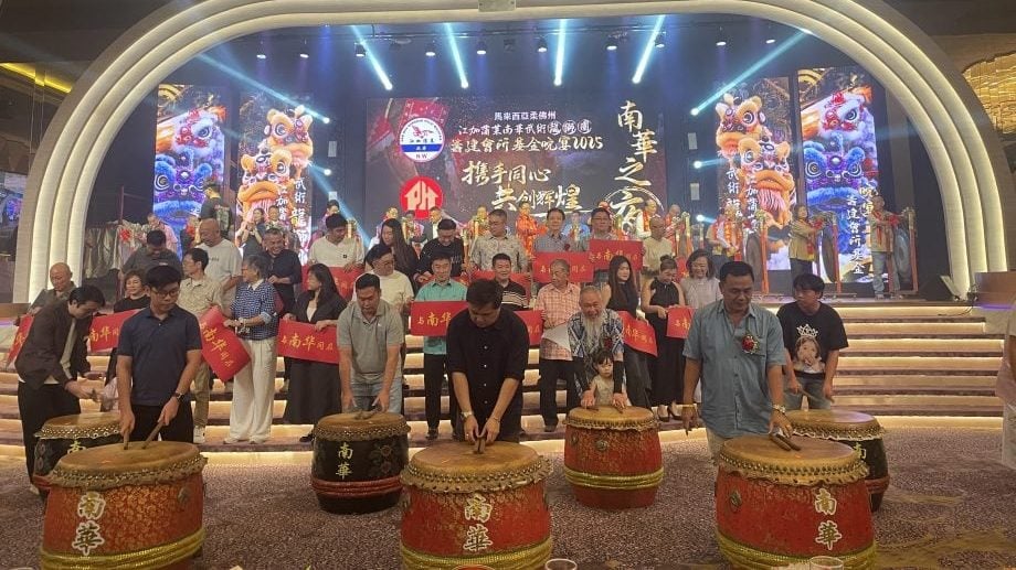 (新山17日讯)不仅达标还超标,江加埔来南华武术龙 狮团昨晚举行的筹建会所基金晚宴改为庆功宴! 委会主席拿督张文辉透露,该团原本的筹款目标为100万令吉,但因获得各界大力支持,现阶段已距离150万令吉不远,能超额达标,完全有赖华社和善长仁翁的努力。 昨晚在该团筹建会所基金晚宴上表示,该会计划兴建会所已有20年之久。 他说,该团在10年前成功购地后,一直在持续推展建会所的工作,直到今年1月份,才获得市政厅的批文,并已顺利落桩。 张文辉强调,南华武术龙狮团能一步步发展起来,持续弘扬中华文化,完全仰赖各单位的支持和付出,此次能盛大开席,也离不开大家的扶持,他因此在台上逐个点名致谢。 亚洲龙狮运动联合会主陈永杰亦有出席晚宴,他以广东话致辞,指该团多年来在传承与推广龙狮文化方面,一直扮演着极为重要的角色。 “南华不止为柔佛州争光,更为马来西亚赢得国际声誉;筹建会所也不只是兴建一栋建筑,更是为龙狮文化扎根,为未来奠定基础。” 国际龙狮总会主席卢月弟则表示,亲眼看到马来西亚龙狮文化运动在本地扎下稳固根基,让他深感欣慰。 “南华成立以来,队伍在国内外屡创佳绩,不仅为华社赢得荣誉,也为马来西亚争光,然而,比成绩更令人敬佩的是团队始终坚守的精神与纪律,秉持中华传统文化为核心,将这些精神发扬光大。” 他指出,为了让更多优秀青年加入,重建会所相当于在这片土地上迈出关键一步,重建会所不仅是一项伟大的工程,更是给予下一代的郑重承诺。 他也在会上宣布,个人将为会所重建工程捐助10万8888令吉;此外,地不佬区国会议员潘伟斯作为开幕人,在会上宣布拨款2万令吉以表支持。 晚宴上筵开逾120席,现场觥筹交错。会上也进行品牌战略合作备忘录签署仪式以及福王控股签约仪式,并备有多项歌舞演出,场面热闹无比。 出席者尚包括:柔佛州华人尊长拿督黄匡顺、主要赞助人冠群国际集团创办人兼执行主席拿督威拉彭康南及地产事业部董事经理兼首席执行员彭依繁。