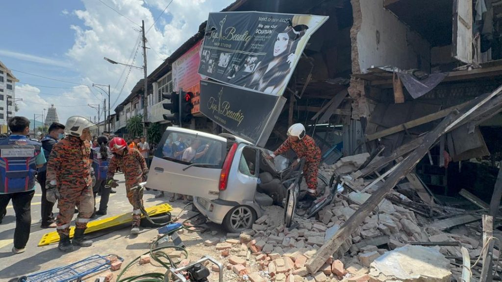 一名77岁男子驾车路经交通灯路口时,失控猛撞路旁一排战前建筑,导致两间老旧店屋前的结构倒塌,半辆轿车被压在瓦砾之下。