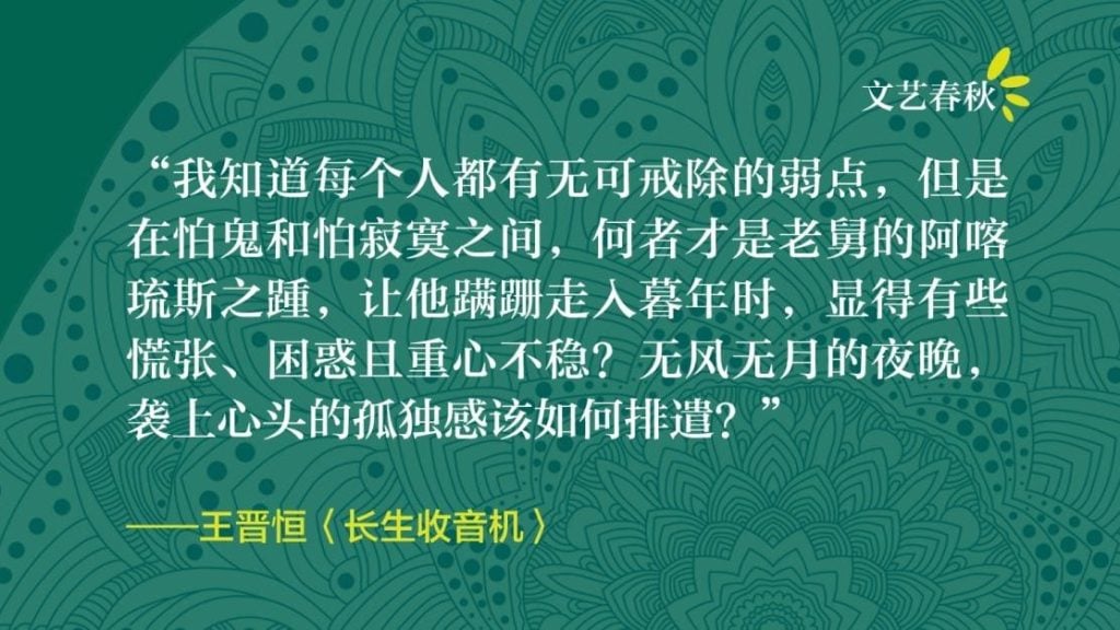 记忆零散而破碎。我该如何从迂回曲折的小区马路,寻获昔年的路线,重抵那间既陌生又难以割舍的老房?前门的篱笆仅仅高及胸口,披覆红褐色的锈,仿佛驮负太沉的岁月重量,需要非常吃力才能推开,然后步上三个台阶,便见慈祥的红脸白须大伯公塑像安守神台,坐镇大厅。客厅不大,藤制长椅悠闲待客;中间一个小茶几,透明的玻璃表面下,粗体字头条的早报摊开。当年的新闻应该没有如今那么可怖耸动,也可能是记忆的误植,往日总是过度美化。 时光过境,带走那些生命中占大比重的人和事,一切皆流,无物永驻。若果客厅的壁钟哒哒逆转,我便能在大伯公的神台下,重逢那位仙逝十余年的老嬷(外曾祖母)吗?几条肥厚的塑料条子捆绕铁架圈成的懒人椅,供老来消瘦的老嬷托身,她的脸庞被揉皱,眼睛挤成一线,微微仰着头,静听后代子孙谈笑风生,自己却总是欲说还休,守着九十几年来的风霜岁月、悲欢离合以及战争离乱。小时候只爱闹,何曾用心去注意老嬷的千叮万嘱和那些吃过的盐比吃过的米还多的掌故,最后仅剩残缺记忆随机拼凑当年的慈祥模样,模糊印象恍若幻觉无法凝定。 一个左转,便是杂物堆积的后厅。高高的天花板向后倾斜,有一口天井开向云际,和煦的阳光流泻,斜斜扫过室内的静物,唤醒一日的元气。壁面刷白,罗列全家福、毕业照和泛黄生斑的结婚照。灶头的蒸气氤氲隐隐飘上天井,喜欢穿花色衣服的老舅母见到我,总是热情相迎,半月形的眼睛流露满满笑意。那些寂静的清晨,房子内的日光灯电量微弱,仿佛黑夜余绪之延伸,母亲拉着妹妹交托老舅母照料,这里因此成了妹妹小时候十分厌弃的托儿所。 对我来说,这间老屋不过是“久久一次”到访的亲戚家,每逢新年在这里收到的红包尤为可观。长大之后,嫁的嫁,娶的娶,从第一房阿芳到第三房的阿莲,掀开珠帘的那个刹那,清丽的大姐姐霎时就熬炼成一个世故的阿姨,踩在木地板的跫音,越来越低沉。后厅纷纷闹闹,正方形大电视前,聚集越来越多顽童,每年新春一起围观国营电视台不断重播的咸蛋超人。马来翻译听起来总是过于生硬。笨重的电视机之上,有一台双喇叭式的收音机,常年闲置,蒙上一层厚厚的尘埃。 人对空间的感知,总是随着岁月产生微妙变化。这间老屋在我长大后变得局促狭小,天花板触手可及,但是,缘何每次看见老舅日渐缩水,纸偶般的身影剪贴在老屋门口迎接我时,又会突然感觉这间屋子变得空旷?站在停车坪和老舅打招呼,老屋子一览无遗,后门的阳光反射进屋,刷白他的寂寞身影。 全国行管令推行期间,我和父母担心带病毒,不敢登门入室,只是买了几瓶啤酒置在篱笆的石柱子,喊他来取。密闭的玻璃滑门左右推开,老舅走出来时,身后总是伴有窸窸窣窣的乐声,好似自真空世界逃脱的乐符。嘈杂的老歌倒也还好,怕是怕那种纯钢琴伴奏,或是唱腔慵懒欲睡的流行乐,把房内的午后空气抽走得更加虚空。 后来才知道,老舅家的收音机是在老嬷和老舅母依次离开,孩子也背井离乡工作后才开始唱歌,至今不曾关闭。老舅常常炫耀家里的收音机耐操,即使终年运作也不会毁损,有些自鸣得意,认为自己眼光独到,同时向大家证明东西还是老的好。我一度怀疑他是因为不会操作收音机,才不敢让收音机停息,担心它从此不再为自己转动时间的歌吟。 老舅原是建筑工人,烈阳为他的皮肤镀上一层古铜色,肌肉精实如石,有传统大男人的那种硬朗和气概。有次,铁片射入胸膛,还能骑着老摩托,一路鲜血直流奔赶诊所求医。他早已练就天不怕地不怕的胆量,更甭说频频发生的工伤。 外婆却悄悄告诉我,从小到大,老舅特别怕鬼。 我知道每个人都有无可戒除的弱点,但是在怕鬼和怕寂寞之间,何者才是老舅的阿喀琉斯之踵,让他蹒跚走入暮年时,显得有些慌张、困惑且重心不稳?无风无月的夜晚,袭上心头的孤独感该如何排遣? 老屋像个巨大的容器承托一个家族的百年记忆,夜色漫漶的时候,家具重新活过来,搬演已然过去的情节,传出难以名状的异响。只有一台老收音机勉为其难,与他相伴壮胆,夜以继日地歌唱、重复空洞的广告和主播的冷笑话。 行管令发布之前,老舅生活还算充实,白天到工地工作,晚上则到唐城茶餐室叫来一打啤酒和老友互通有无。边境的五光十色还为他的老年生活盖下斑斓花印。有人绘声绘影,说他在那边邂逅了生命的另一场春天……后来日子转入漫长无尽的寂寞时令,那台收音机便再也未曾止歇,像白昼中一盏虚设的日光灯。据老舅的说法——开着收音机能够辟邪。 老舅的双眼常常透露着凛然正气,因为传统形象的约束,很多时候都不显山不露水,面对任何伤逝都要抑制眼泪奔流。万一两个渺不相涉的空间交错,老舅母和老嬷不小心以魂魄的形式回归这间老屋,他们会经历泪眼涟涟的相顾无言,还是会触发老舅的原始恐惧? 有关老舅母在最后阶段所承受的折磨,我都是通过旁人的转述,想像而得。孙子简单的关系考题,考出出题人与受试者生命定位的错置。“你还记得你叫什么名吗?”“你知不知道我是谁吗?”之类的问题,换来老舅母一个又一个滑稽又哀伤的回答。 老嬷则走得比较安详,九十几岁高龄,没有经历年深月久的拖磨。外婆至今清楚记得,和老嬷见最后一面时,她仍站在玻璃滑门前,交代买粿拜神的事宜,显得一派稀松平常。从我降生以来,老嬷已经老到不能再老了,所以我记不起来她的容颜究