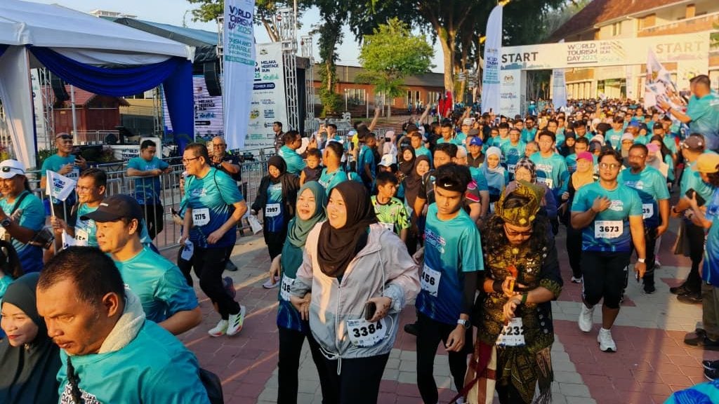 为迎接世界旅游日而举办的马六甲世遗欢乐跑,共吸引5000人踊跃出席,5公里的路程经过鸡场街时也受到舞狮舞龙的迎接,非常热闹。